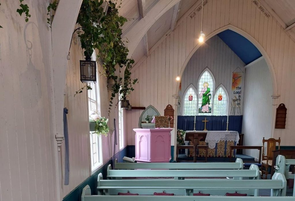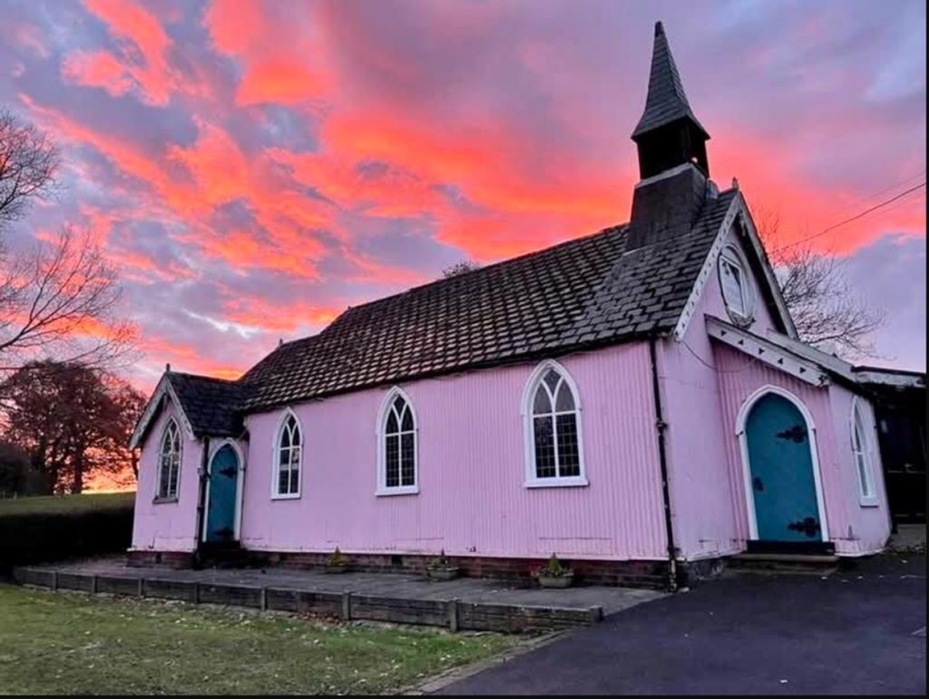 St. Philip’s is located in the village of Hassall Green in rural south Cheshire, England. The church started life as St. Mary’s in the nearby town of Alsager and in 1883 it was moved by horse and cart to its present location. The church is painted pink and is known for miles around as the little pink church. It can be found in Smithy Grove, Hassall Green, Sandbach, Cheshire CW11 4XY.